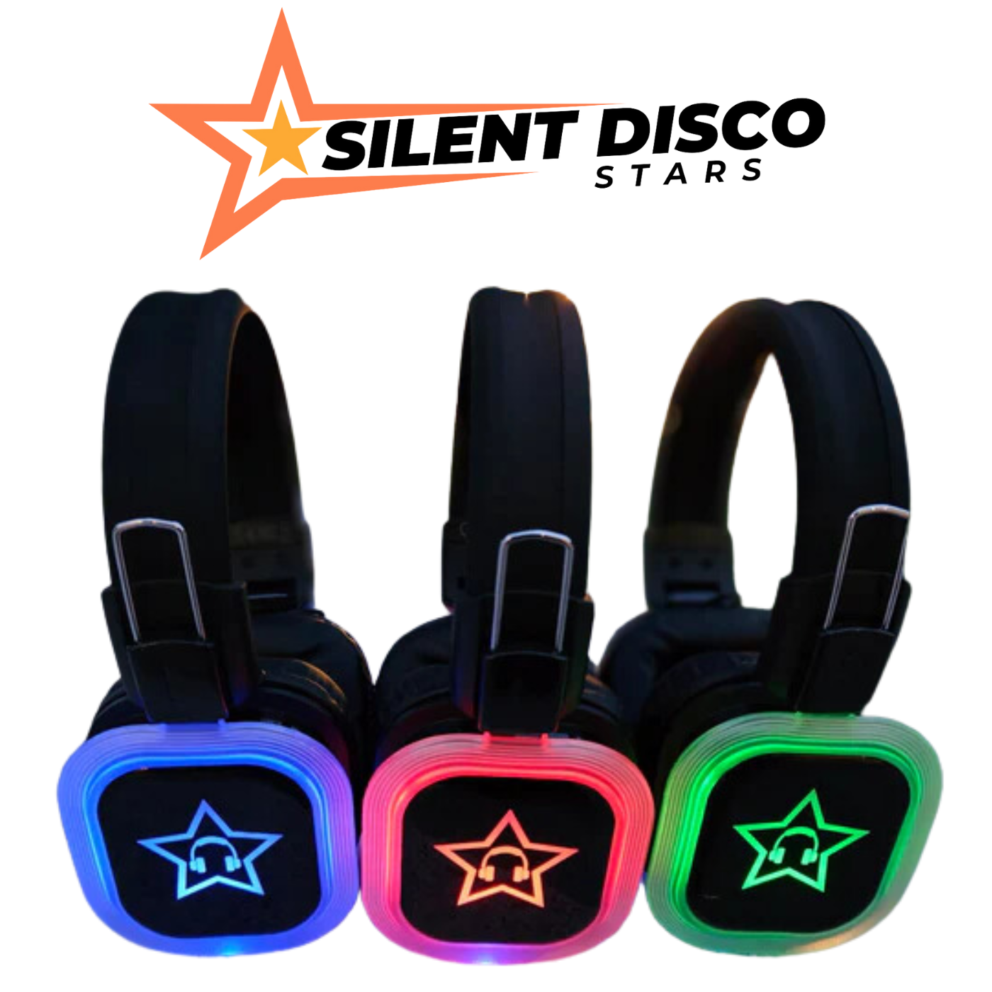 Get the party started with Silent Disco Stars! Our Silent Disco hire systems arrive ready to go straight out of the box, packed with everything you need for an unforgettable night of singing, dancing and fun with the best quality and incredible sounding LED headsets.