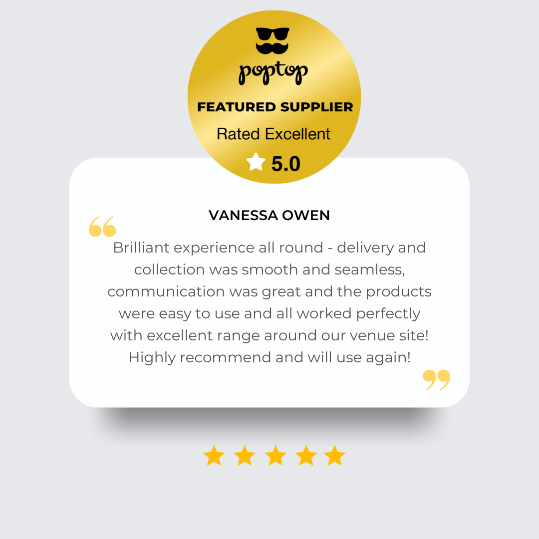"Amazing service! Brilliant at helping me sort my last minute silent disco needs! Will definitely be using again! So helpful!."